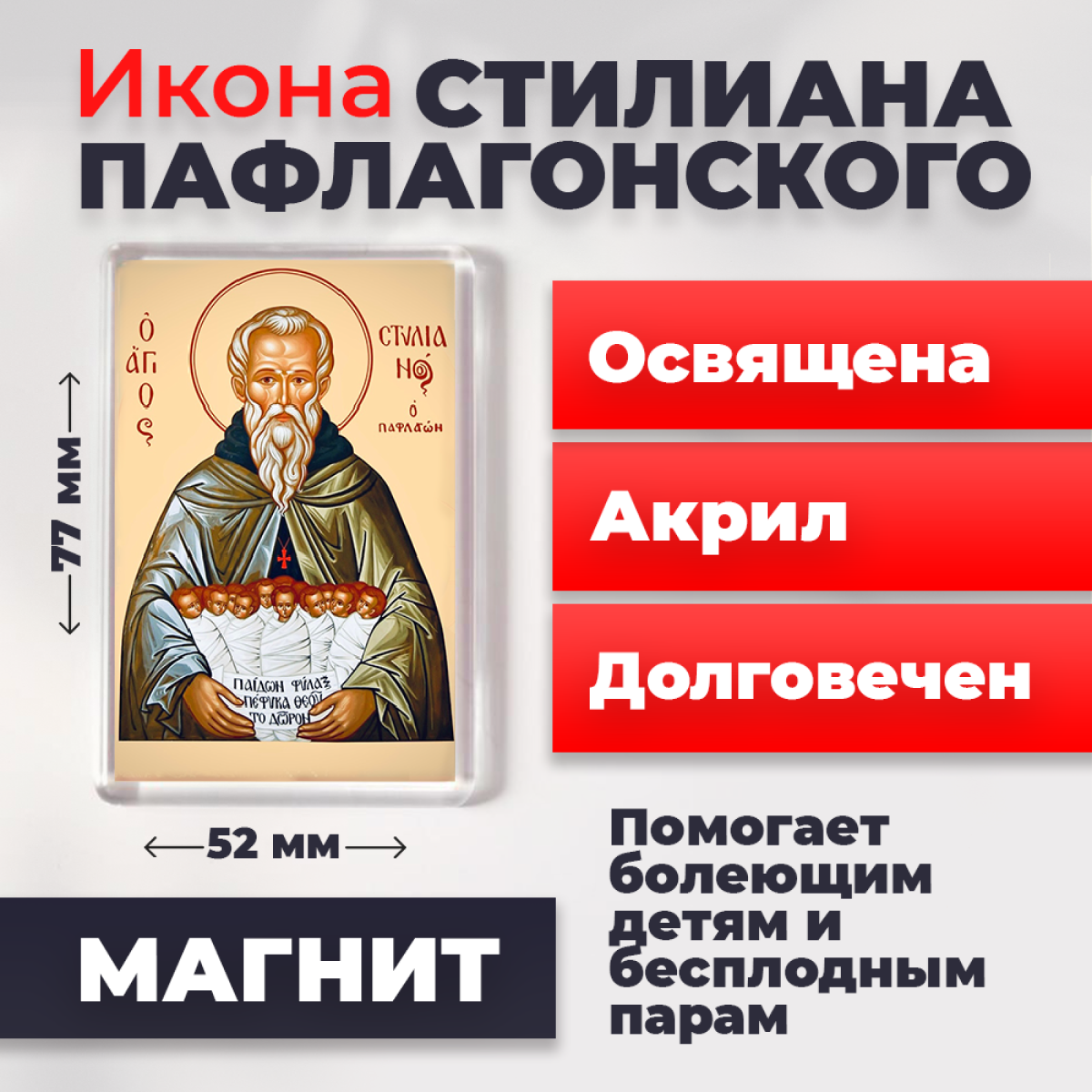 - Освященная икона на магните "Святой Стилиан Пафлагонский"